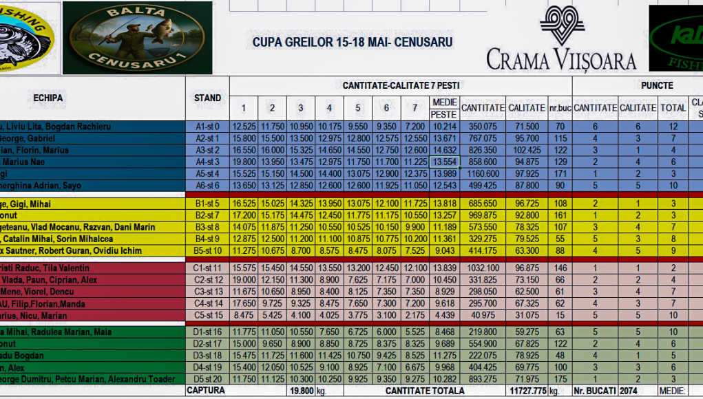 📌 Iar adevăratul moment de glorie a venit din partea standurilor 4 si 11, care a atins o performanță excepțională: peste 1,1, respectiv 1 tone de pește capturat – o realizare care ridică standardele acestui sport!